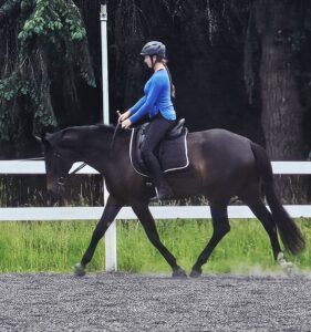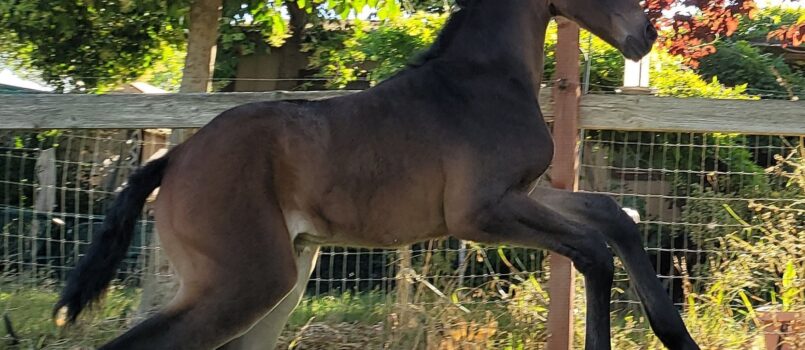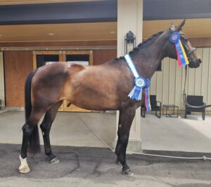 June’s oldest full sibling, Domina WSS, just began dipping her toes in the dressage ring this fall at 3, with scores in the 70s at training level. Her next full sister, Del Aire WSS, is owned by a trainer in Montana – big things are expected for them soon! Click here to see Domina’s training level test!