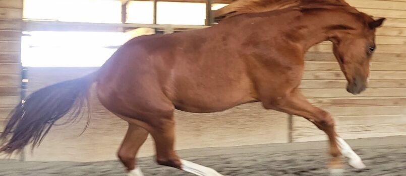 A striking and athletic young mare with modern type, Duet Don Bravada is a beautifully bred Westfalen filly, ready to begin her journey toward sport. She combines proven German sport horse bloodlines on both sides of her pedigree, offering a great blend of movement and future potential. Duet is light and feminine, taking soft steps – she has sufficient bone, but is a ballerina all the same!